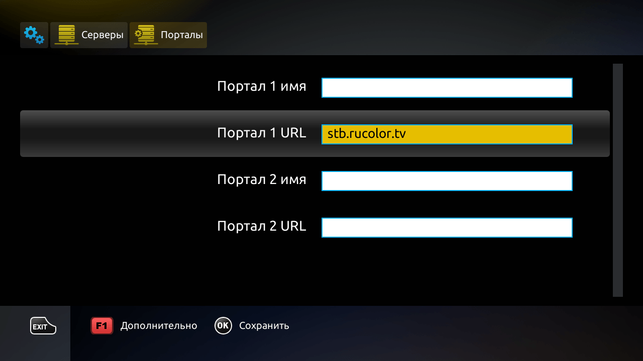 6. В поле URL прописываем адрес нашего портала stb.rucolor.tv