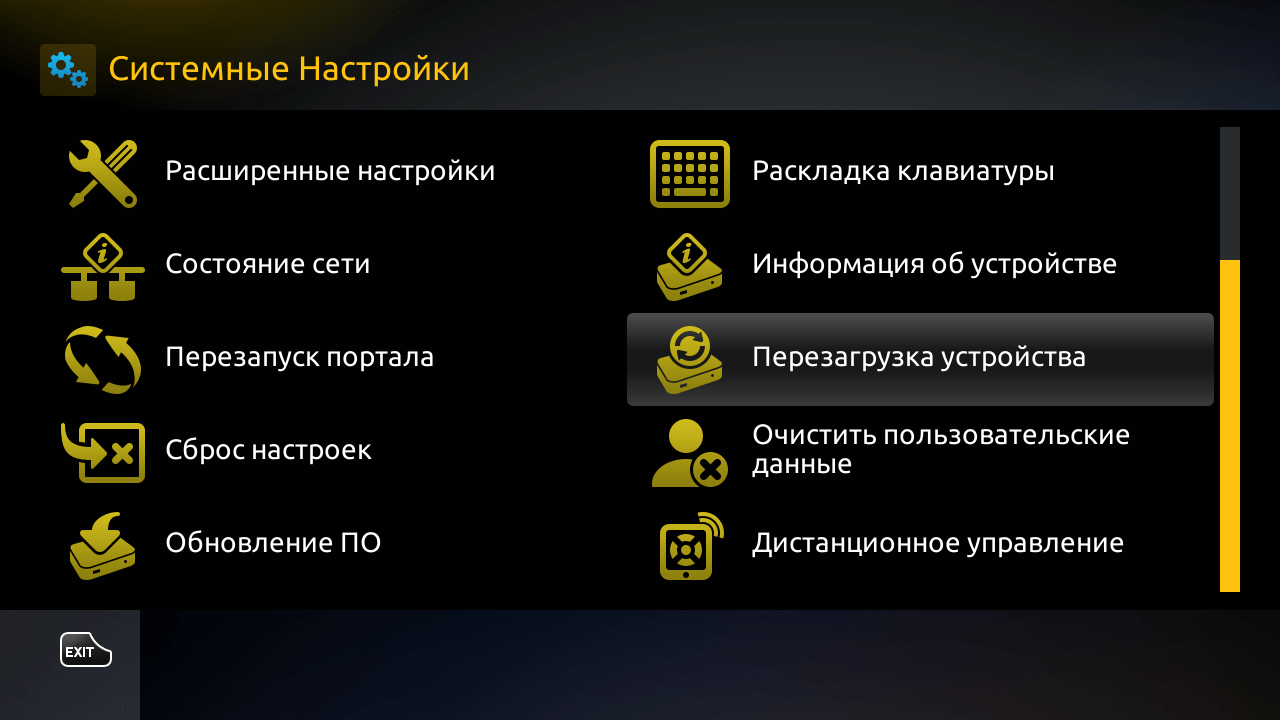8. Выходим из этого меню и перезагружаем приставку